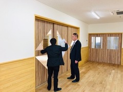 富岡小の西に完成した富岡学童クラブを視察。